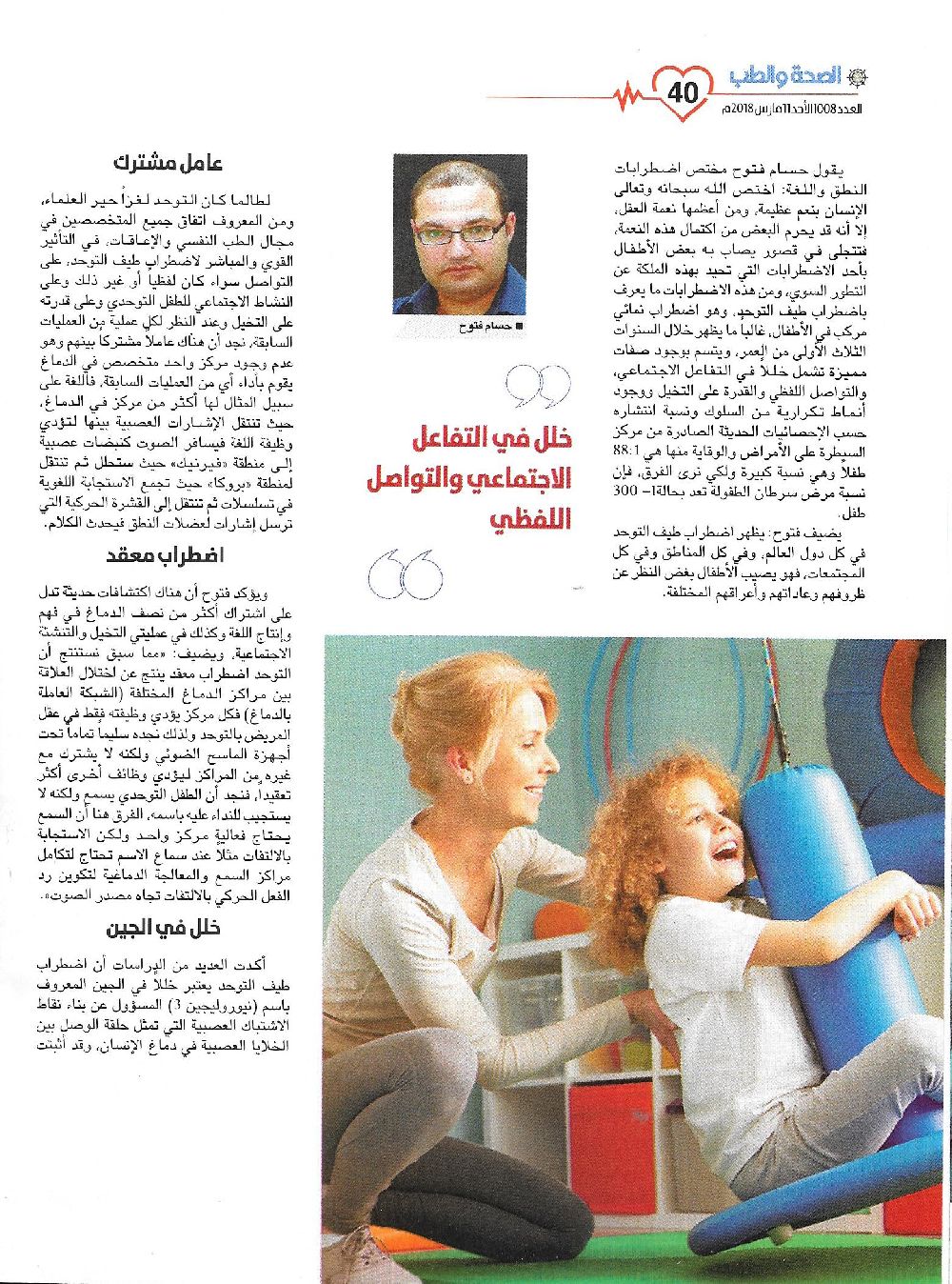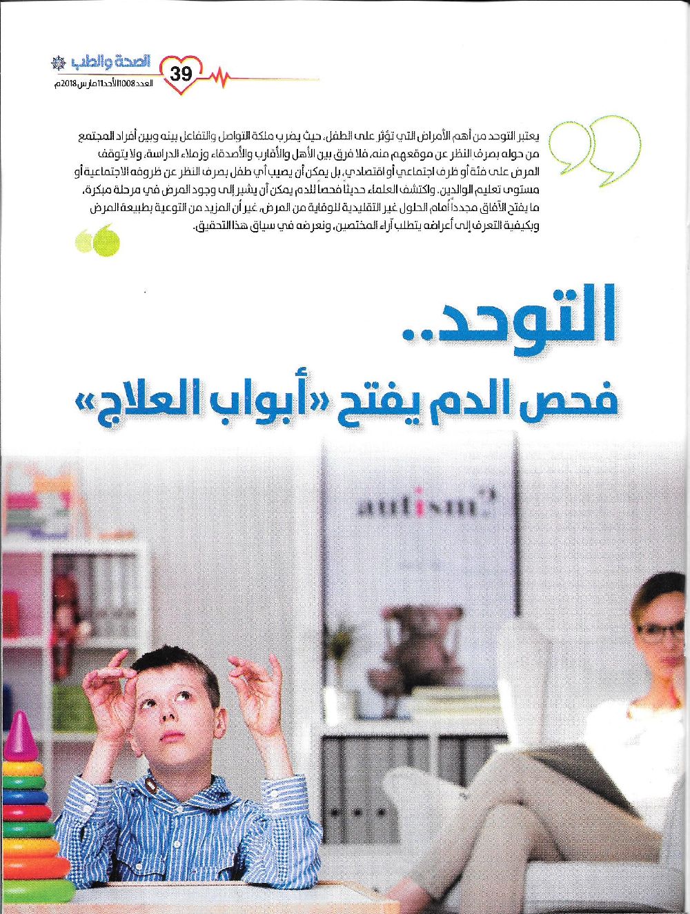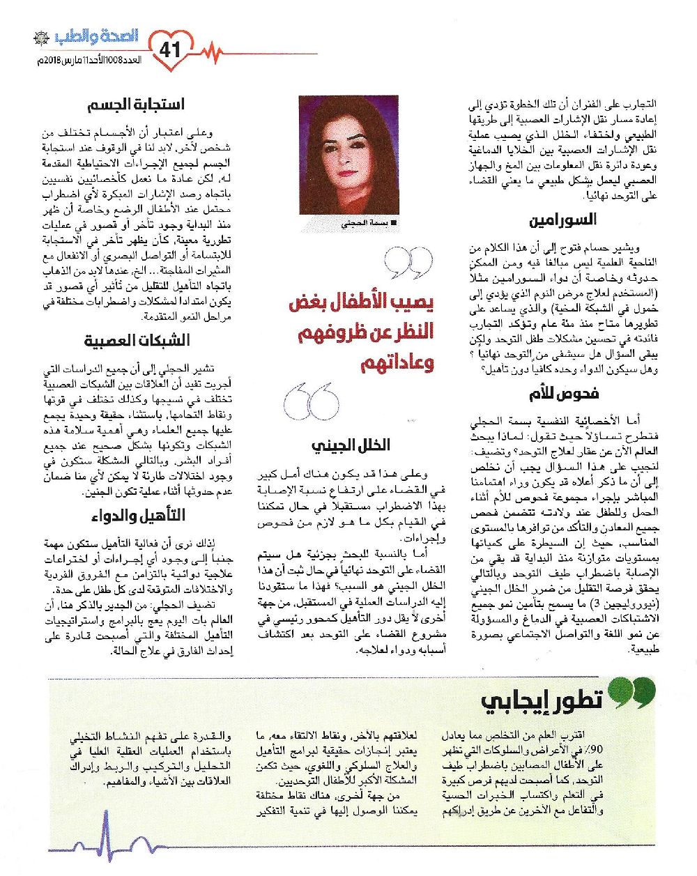 A New Hope in Autism Treatment is Knocking at the Door. Our article today in Health & Medicine magazine, written by Specialist Basma Alhajali