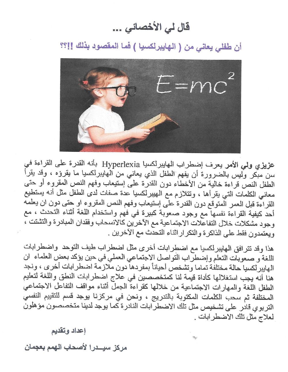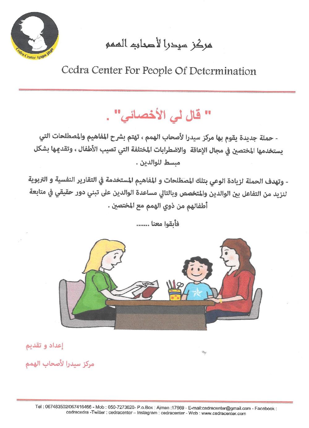 حملة ((قال لي الأخصائي)) خاصة بمركز سيدرا لأصحاب الهمم